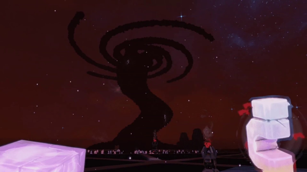 A few hours ago we met up and he took us deep into his massive portal tree… I of course drowned because I’m an idiot and was a “respawn” behind the guys. But I saw where they were headed and caught up a few moments later to find a bit of stunned silence and this: