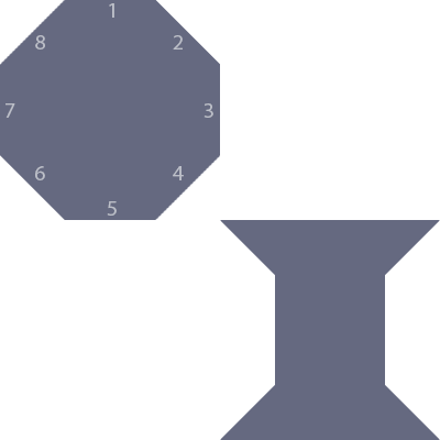 You can only get so far… chiseling slopes for edges 1, 3, 5 and 7 is fine… the problem arises when you want to chisel 2, 4, 6 and 8, which require other chiseled blocks above or below them.