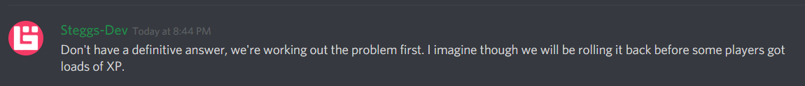 Feel free to roll back the server if you can too, I have a feeling the retroactive xp being rewarded was handed out on each world load.