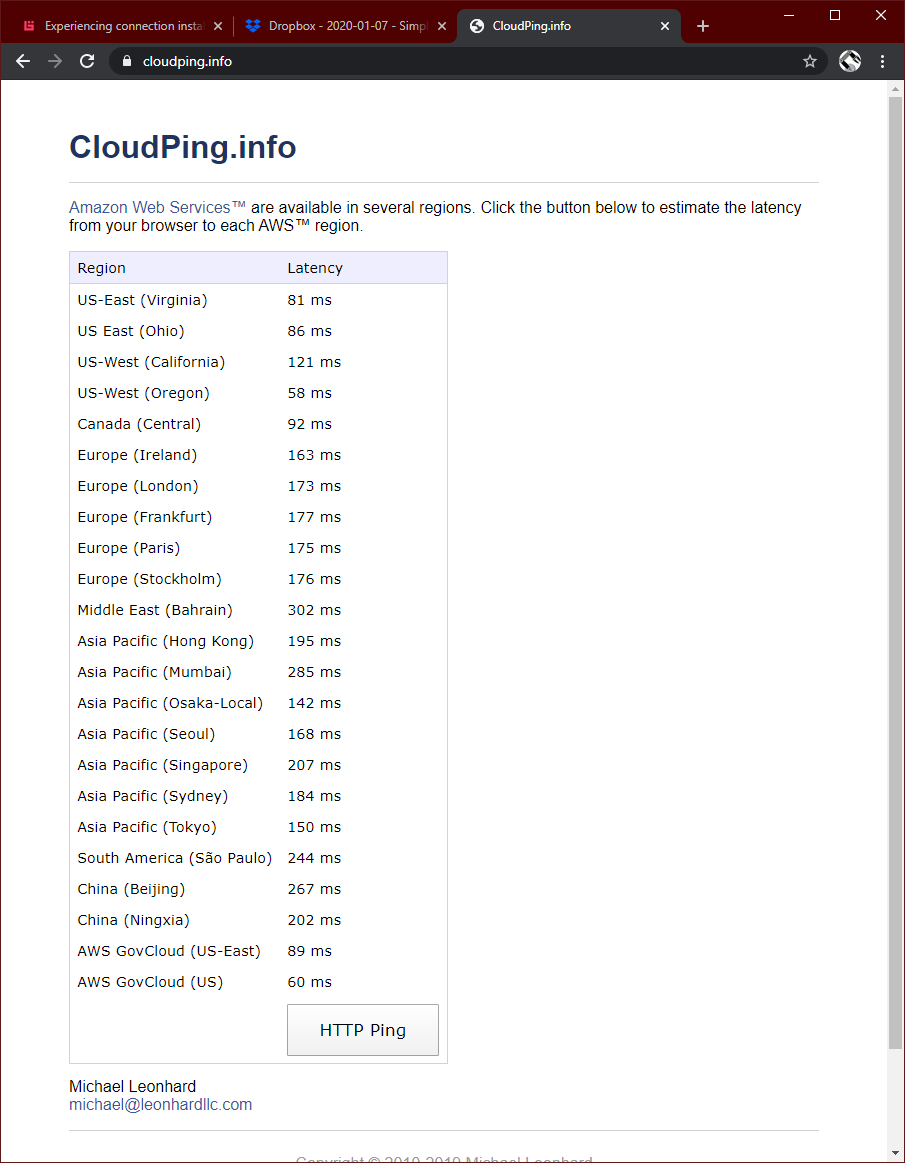 I kept getting random, weird results that day but looking at a 30 second pingtime between myself and amazonâs data center, I could tell this wasnât a boundless problem.