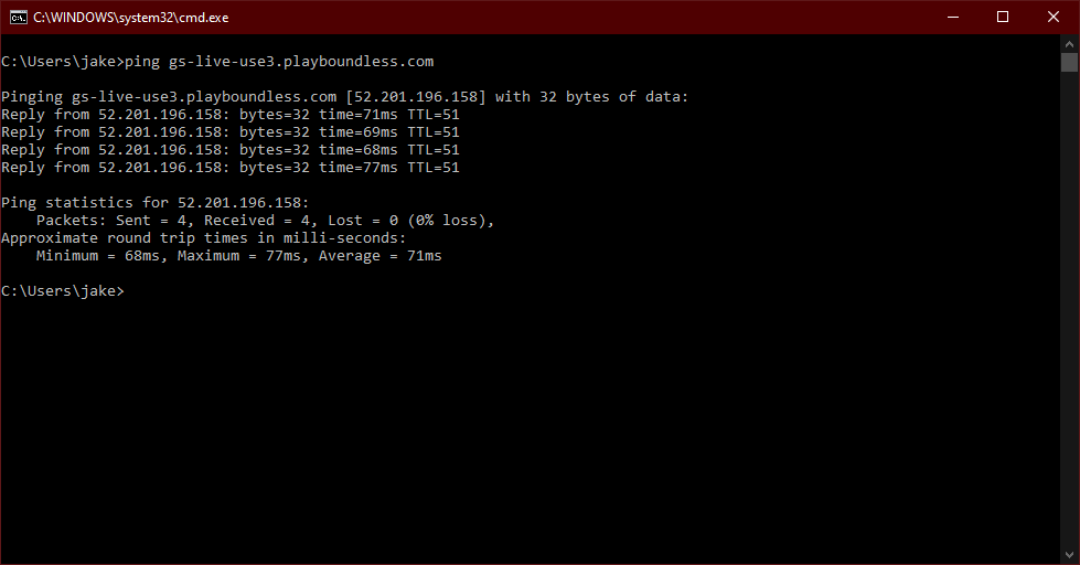 You can ping the boundless servers directly to see what your connection is like outside of the game client. Boundless servers use a DNS naming convention like this: