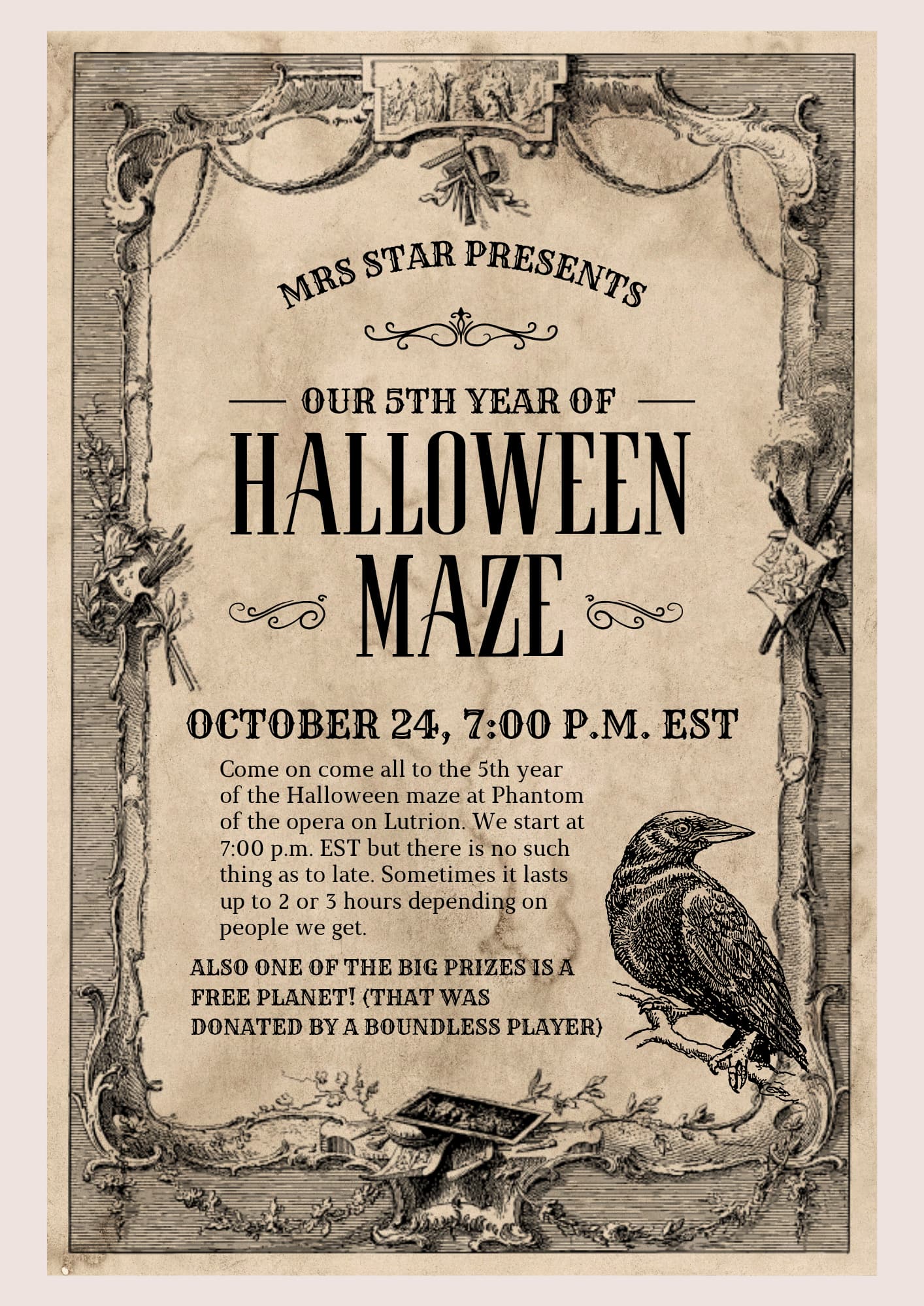 Wow! It’s year 5 of the Halloween maze! Come on come all to the Halloween maze on Lutrion! Started on 2025-10-24T23:00:00Z