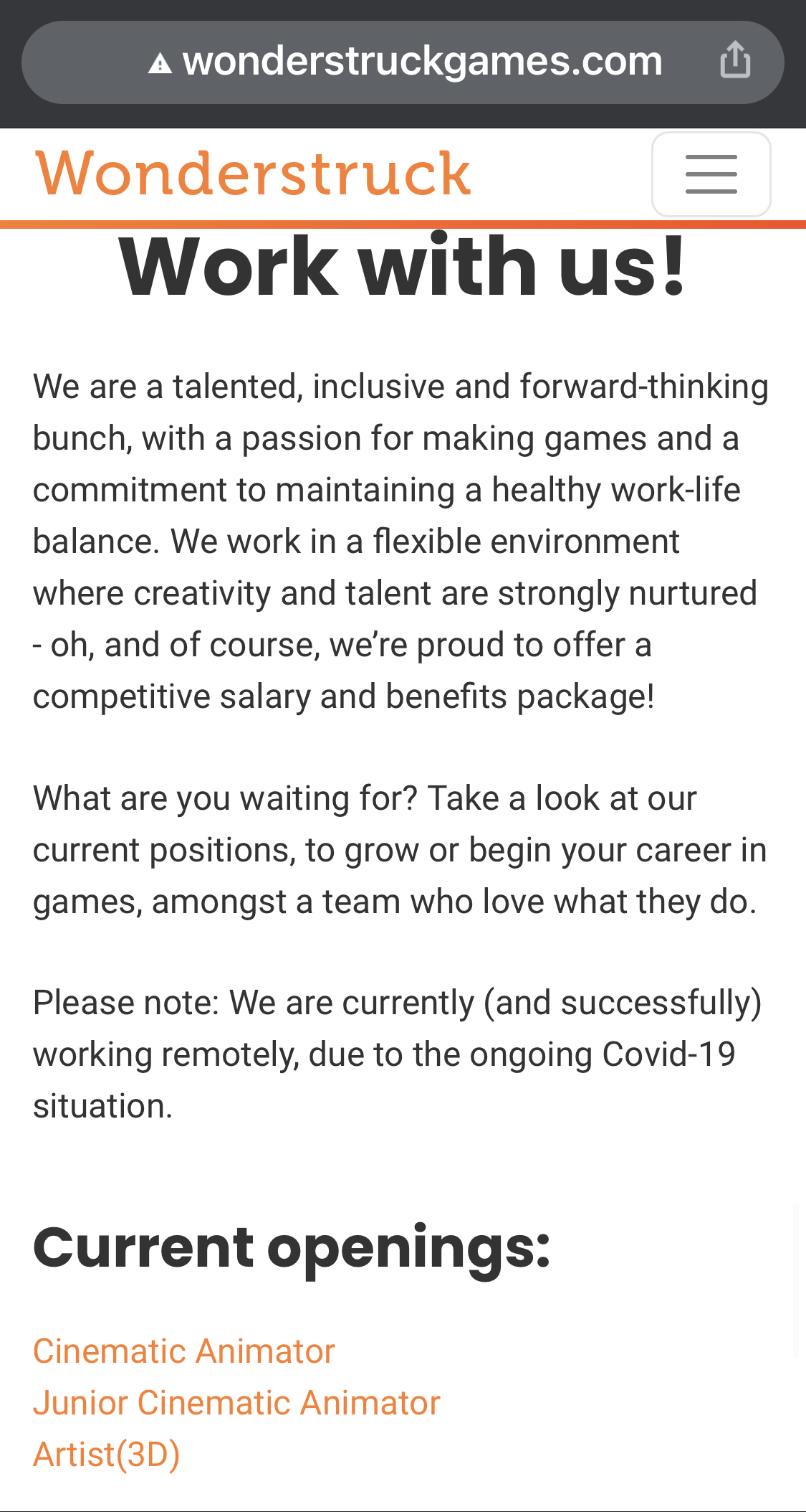 Looks like they are ramping back up at Wonderstruck. They are working remotely, there is still hope for the game.