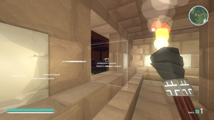 I wandered around a bit and went back to the house, where I found the doors in place, but completely invisible. (I can tell they’re in place because I can’t go through the gap without opening them.)