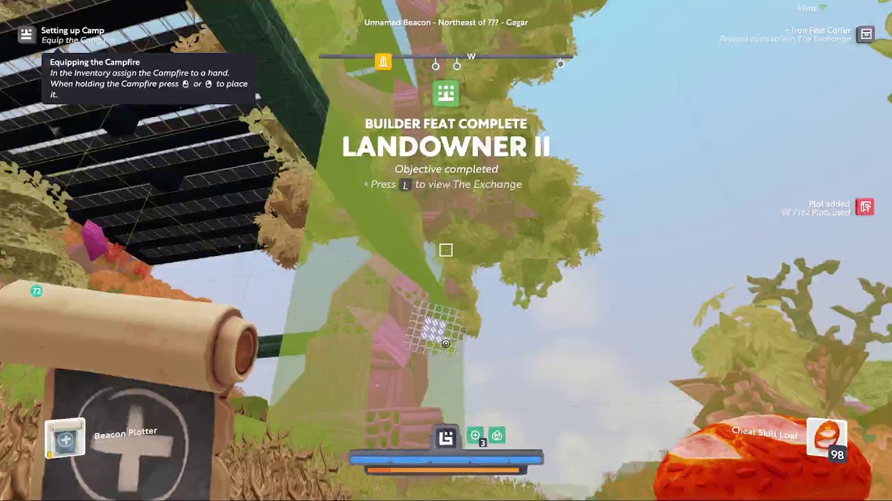 - You showed the Inventory at the beginning, where it says 96 / 162 Land Plots.