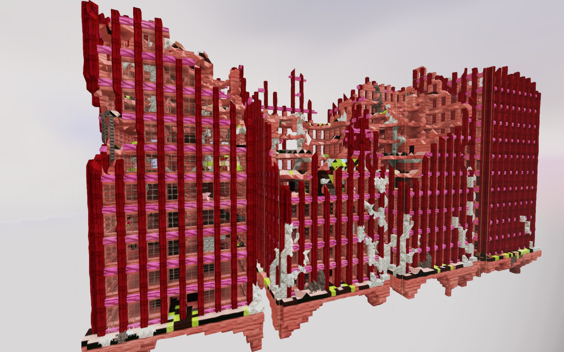 I don’t have any tokens directly to those apartments, but I have a bunch on a shop stand to the planet. Given the height of those generated structures, they are easy to spot. As stated earlier in this thread there are 4 types of the skyscraper, some have chests in the basement with concrete, or bitumen (on a lower floor?) as well.