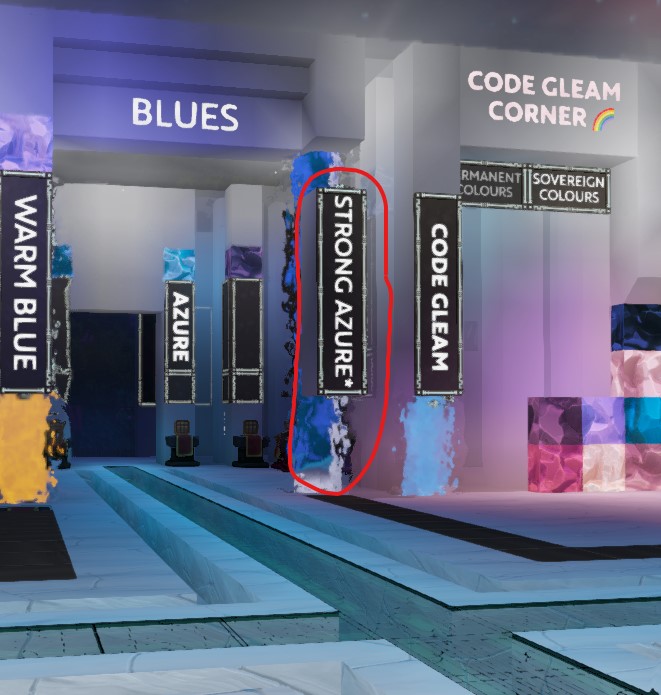 Somebody just unlocked Dark Cobalt gleam. Since Sarius has the Viridian on a T1 right now, I went ahead and added this color to my Pandora safe farm. I’ll change the sign later, says Cool Red for now.
