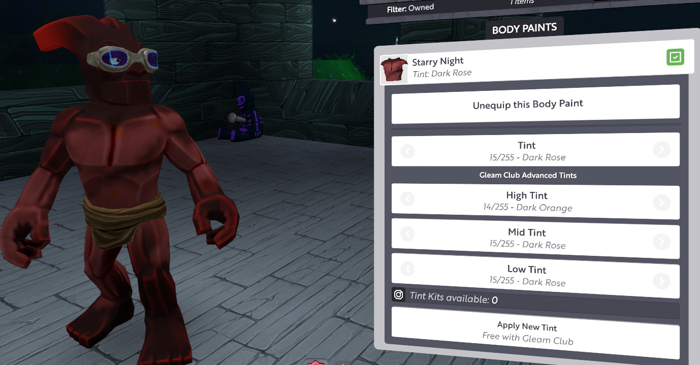 It’s not part of my identity, but maybe this will help someone, or maybe I’m way off base, but you can use Gleam Club to set all colors on the Starry Night paint to the same thing and get something that resembles vitiligo.