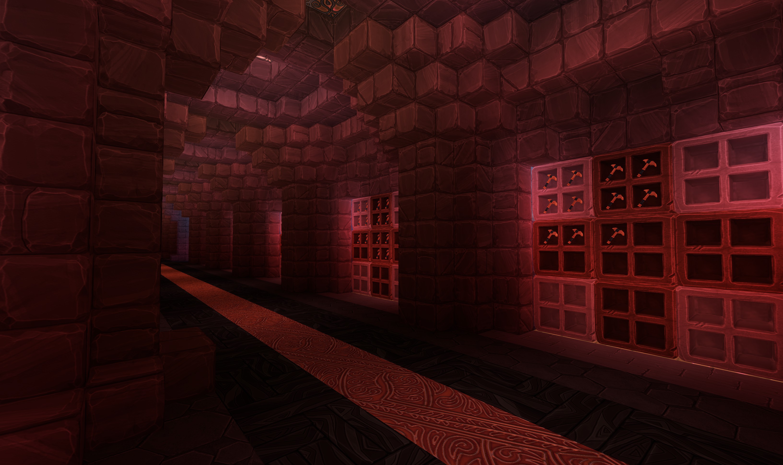 Man I’m starting to like how our Armory is looking … Love the fact that I’ve been able to let the light of the gleam blocks bleed in from behind some other blocks. What do you guys think ?