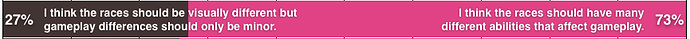 …before anyone mistakes me, I’m a proponent of racial abilities. I’m a proponent of races having separate but balanced gameplay styles. I voted in the majority in @Vastar’s screenshot. I’m just still incredibly salty about what I thought was the incredibly cool addition of a backer race in Boundless.