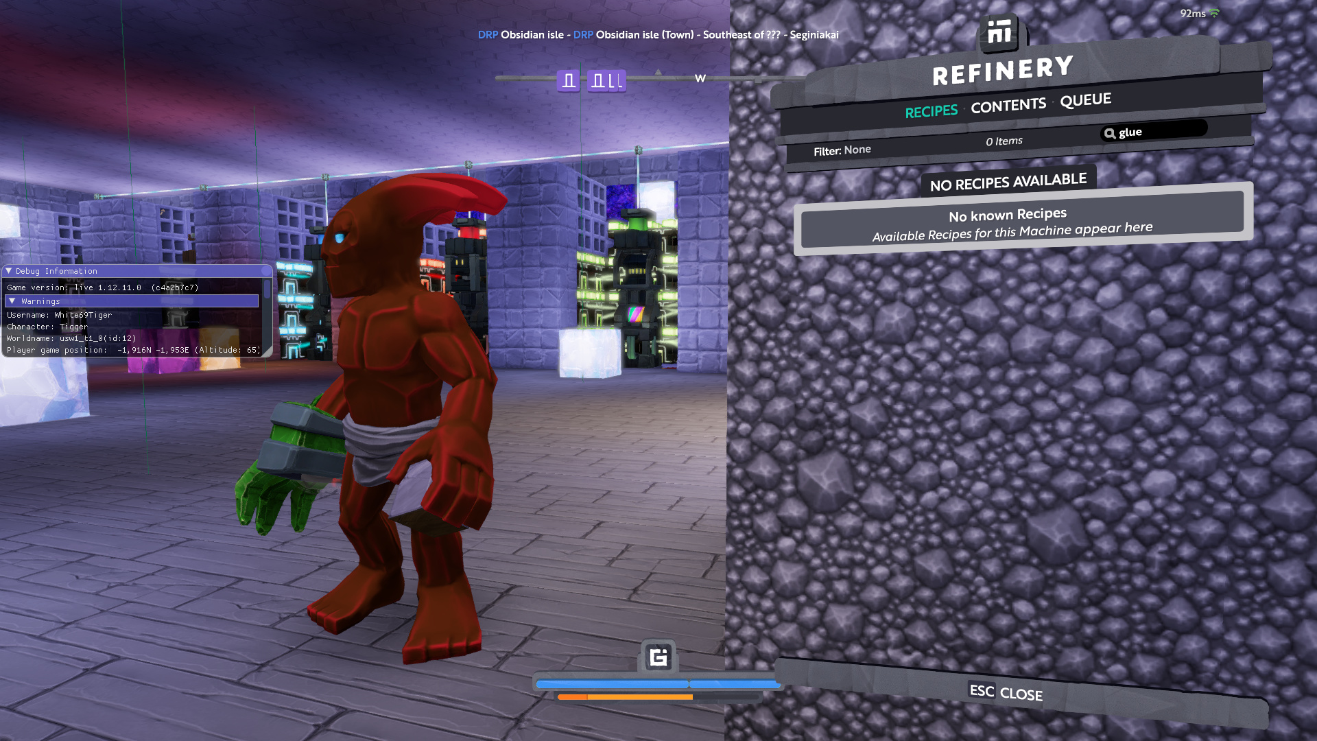 no recipes are showing up on any of the machines and this guy can make almost everything!!even on the work bench nothing shows up changing characters and going back didnt even help only way i could fix it was to shut game down and start it back up.