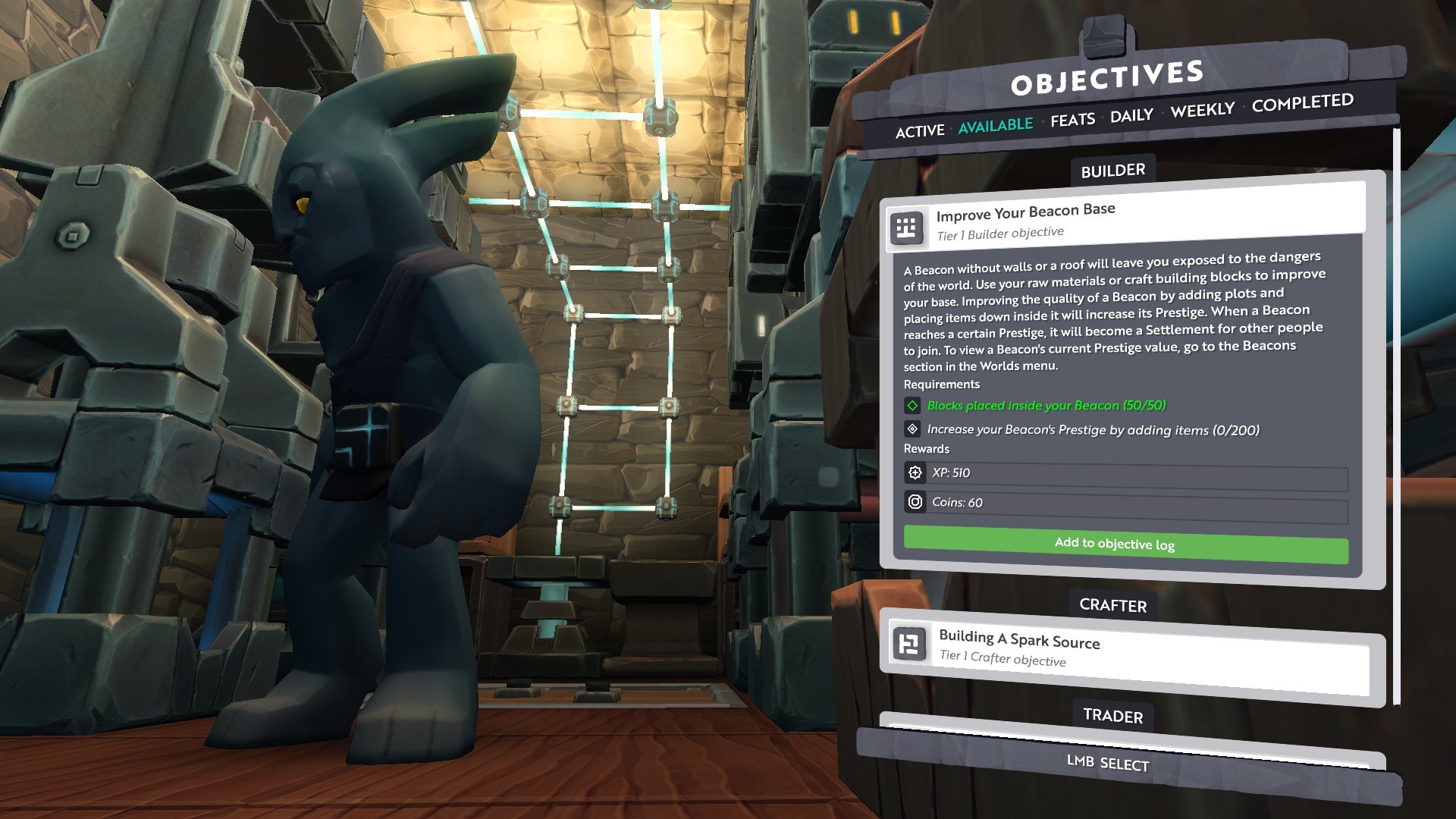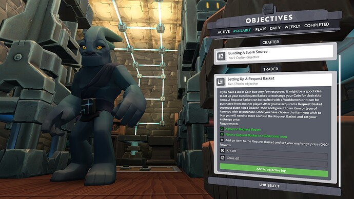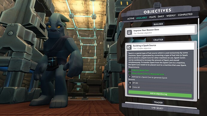 On the subject of not working with certain fuels, the furnace building and fueling objective won’t fire if you try to fuel it with compressed peat. I had to throw in some compressed soft coal for a second to get it to fire.