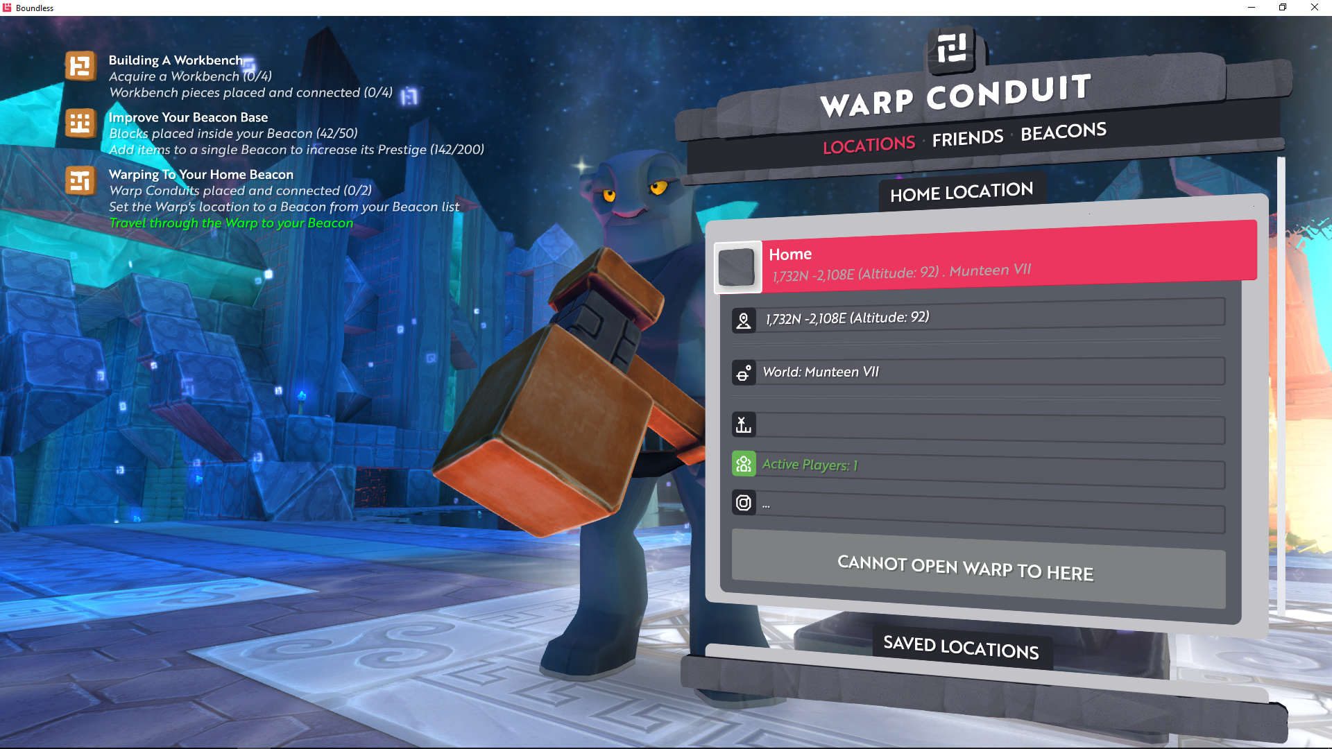 Omnicombat did the tutorial up to “Craft a Beacon Plotter with the Crafting Table” on Therka and travelled to OmniUno’s shop beacon on Munteen