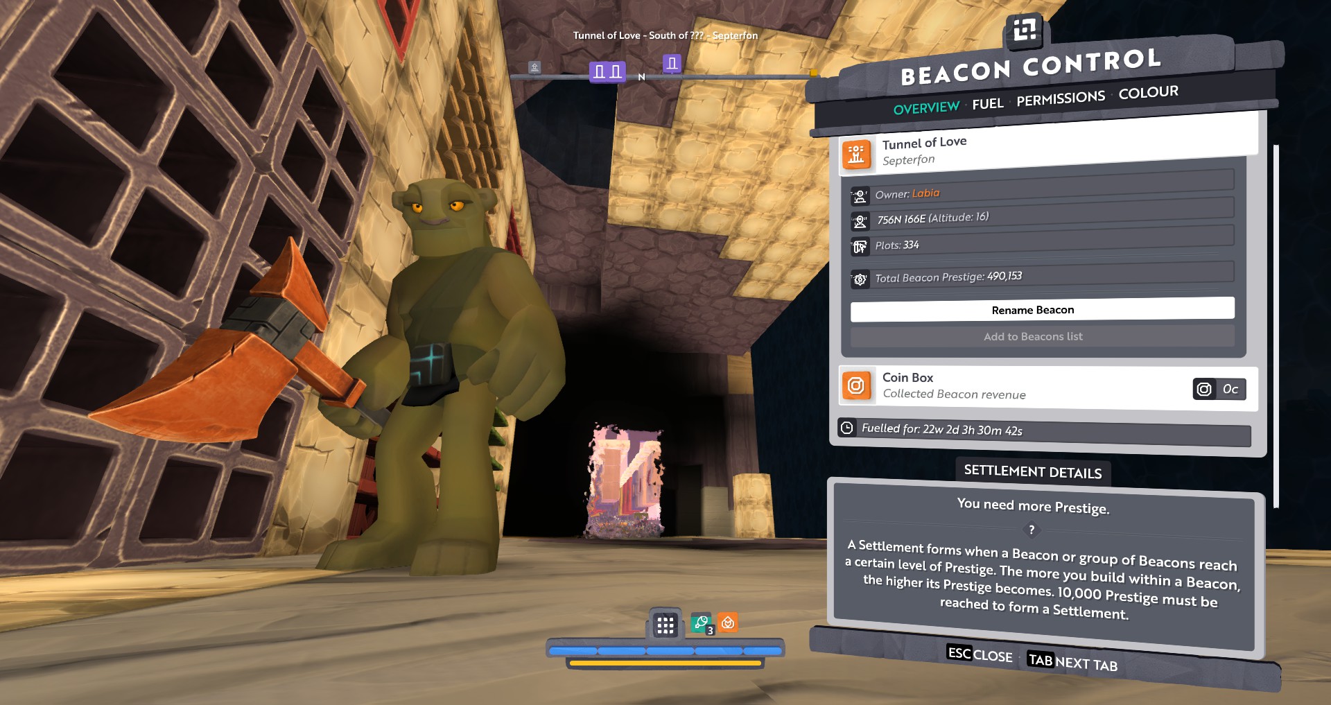 Not sure if this is the recent update or from the one before but seem to have settlement issues with my beacon that has 490,000 prestige, and has a few other builds connected.