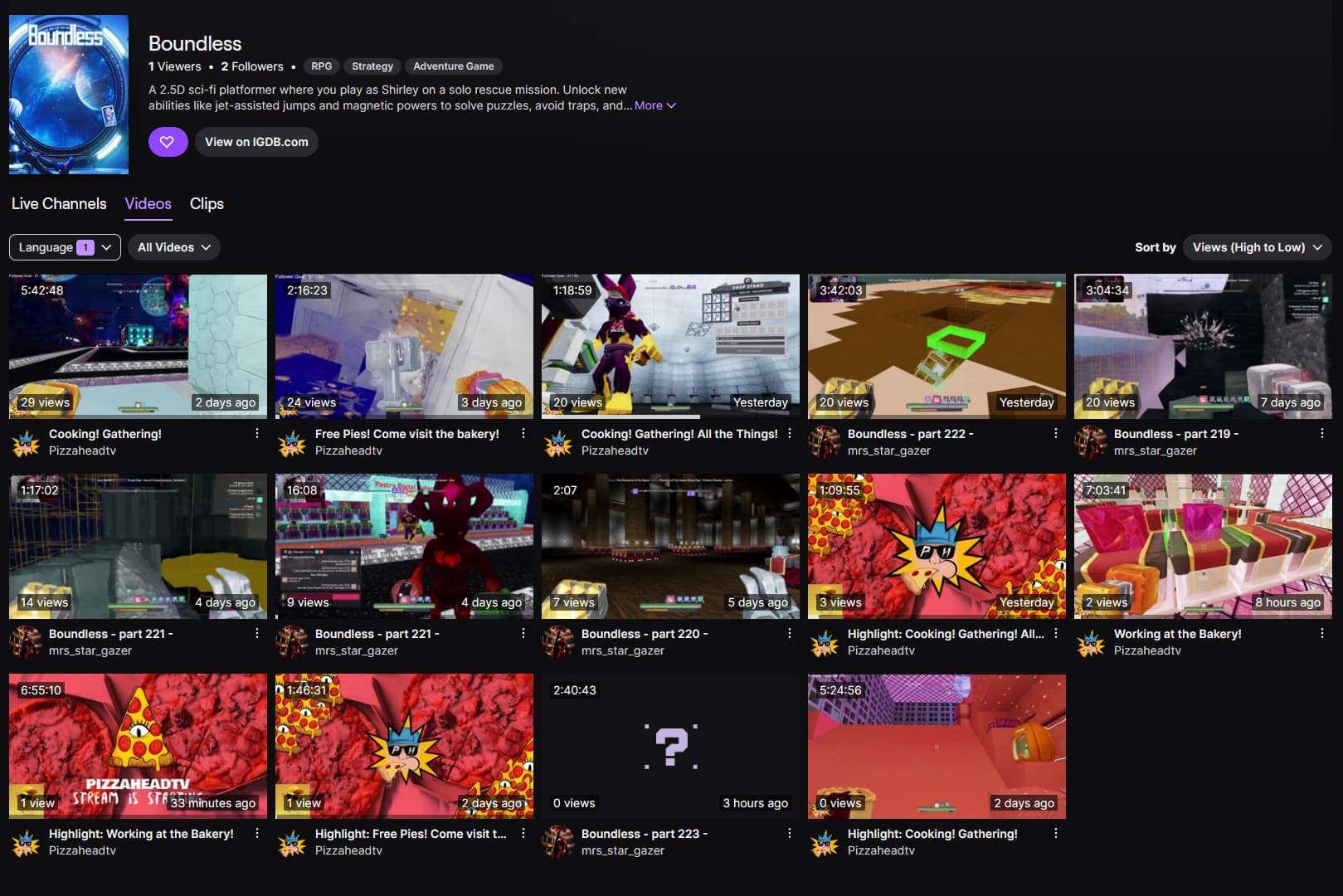 We show up under the correct Boundless during streams, but after the streams are over all the vods post to the wrong Boundless. No VODs are listed under correct Boundless. They are all posted to Boundless(blue). I gave a screenshot. Twitch said their is an issue on their end.