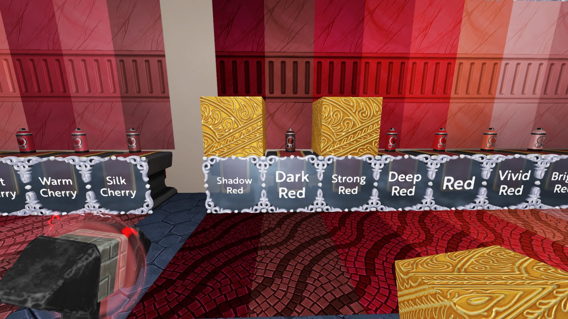 I want a bright red (probably “Red”), a maroonish and a darker maroon as a swatch that all look nice together and go well with gold filigree and refined gold.