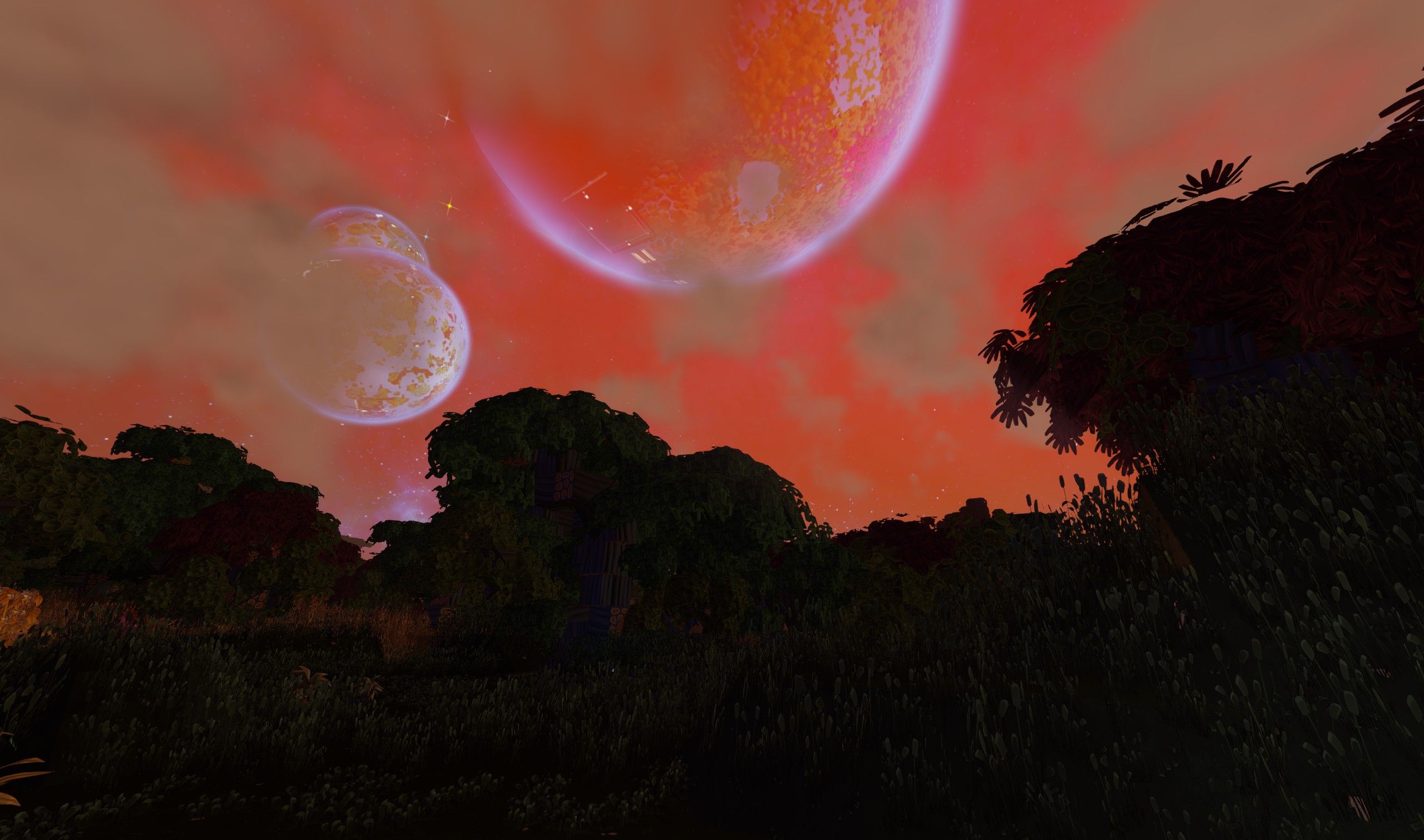 it starts crimson almost, changing to orange-ish to pinks to light violet to full daylight blue: